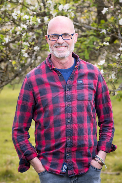 Lexi is one of the original founders of Bensons alongside Bean, and now leads the team while working closely with clients and growers every day. Back in 1999, Lexi and her family saw a gap in the market for proper apple juice made from real British fruit with no shortcuts. What began around the kitchen table with a few crates of apples has grown into the Bensons you know today. From those early festival stalls to running a thriving family business in the Cotswolds, Lexi has always kept the same values at the heart of Bensons: support local farmers, keep things natural, and create drinks that bring people together. Outside of work, Lexi enjoys cheering on her grown-up children at rugby and hockey matches, walking her dogs in the countryside, and playing padel. Her approach to business and life is simple: focus on quality, sustainability, and passion in everything she does.Bean – Co-Founder and Managing Director